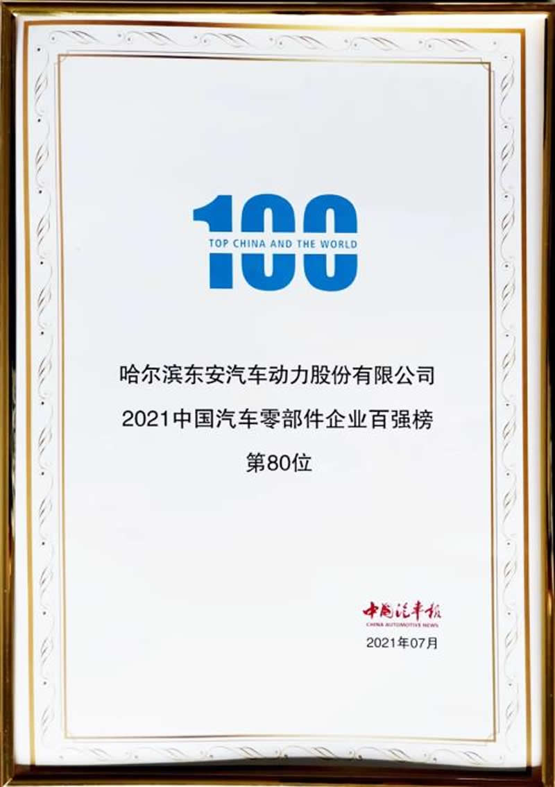東安動力上榜2021中國汽車零部件百強企業(yè)名單