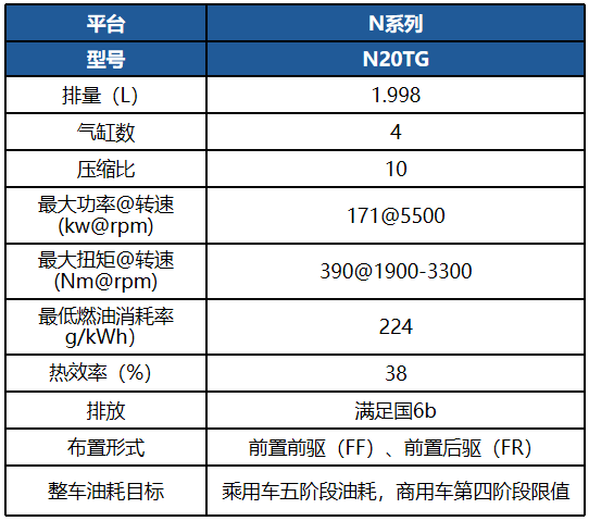 滿足國(guó)6b排放、乘用車五階段和商用車四階段油耗限值要求。N20TG發(fā)動(dòng)機(jī)于2021年1月SOP,已匹配UNI-K、UNI-T、 UNI-V、CS75Plus、凱程F70、江淮悍途皮卡等車型上市。技術(shù)特點(diǎn)